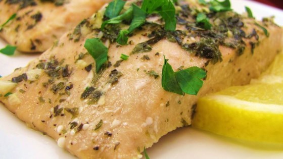 Place fillets in aluminum foil, cover with marinade, and seal. Place sealed salmon in the glass dish, and bake 35 to 45 minutes, until easily flaked with a fork.