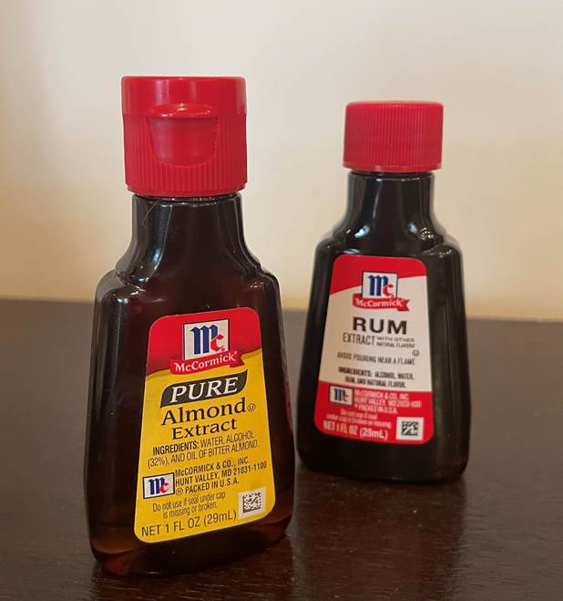 So, to start experimenting with almond and rum extracts, it’s a best practice to cut the vanilla that a recipe calls for, in half and then add a touch of almond and/or rum for depth. Dan and Kathy tried subbing almond extract for vanilla in their banana bread recipe last week and reported it was INCREDIBLE! “Best banana bread I’ve ever had,” Dan said.