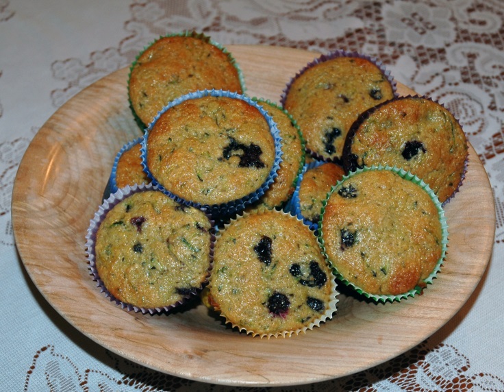 In a large bowl, combine flour, sugar, baking powder, cinnamon and salt. In a medium bowl, with a fork, mix oil, eggs, zucchini. Stir zucchini mixture into flour mixture just until flour is moistened.