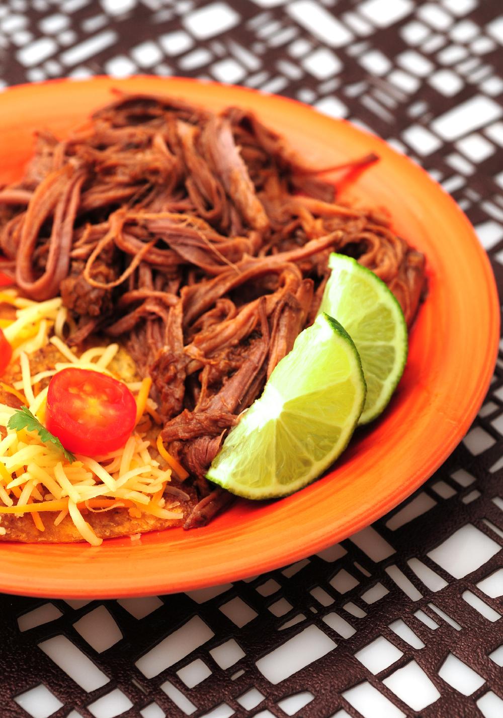When meat is tender remove from oven and let cool. Shred beef with fork.
