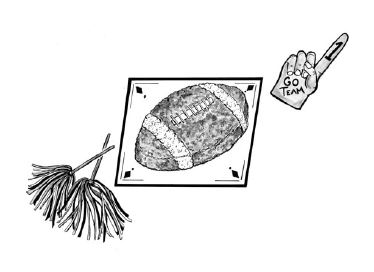 Grease a 10-inch round cake pan. Prepare cake mix as directed. Bake 45–50 minutes at 350°. Cut a 2-inch slice from center of cake. (Let the kids eat this middle slice.) Push 2 outer sides together to shape like a football. Ice with chocolate frosting. Make laces with white icing.