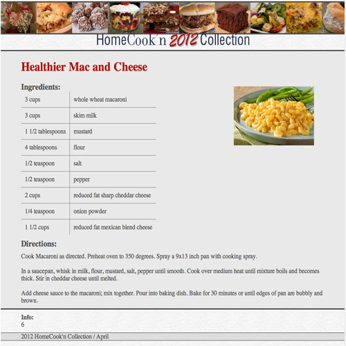 - Every Recipe from each issue of the 2012 HomeCook'n Newsletter