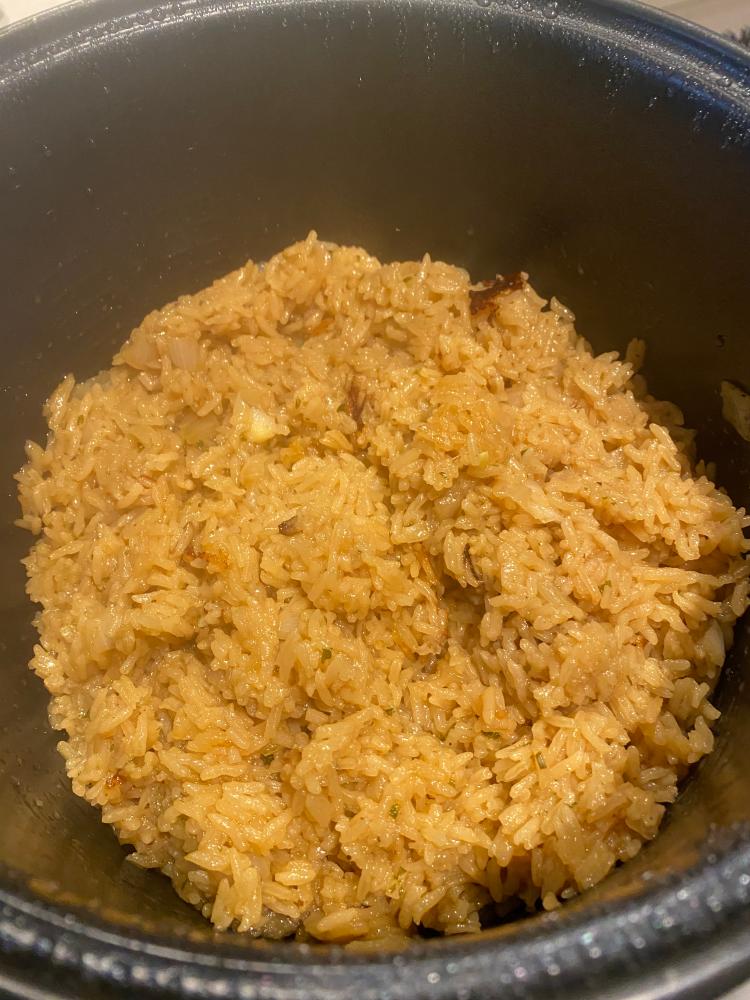 Taste rice and add salt only if needed. Remove from heat and add parsley. Serve with chicken, pork, or beef.