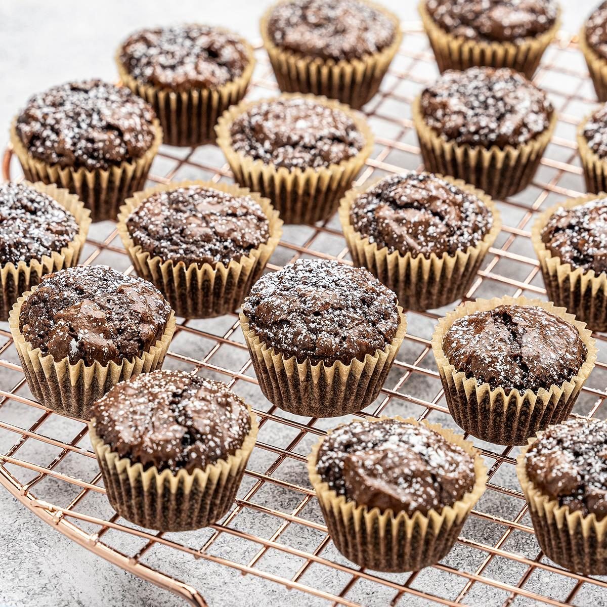 Line 48 miniature muffin cups with paper liners, then fill each two-thirds full with the prepared brownie batter. Editor's Tip: A small cookie scoop makes filling the muffin cups quick, precise and mess-free.