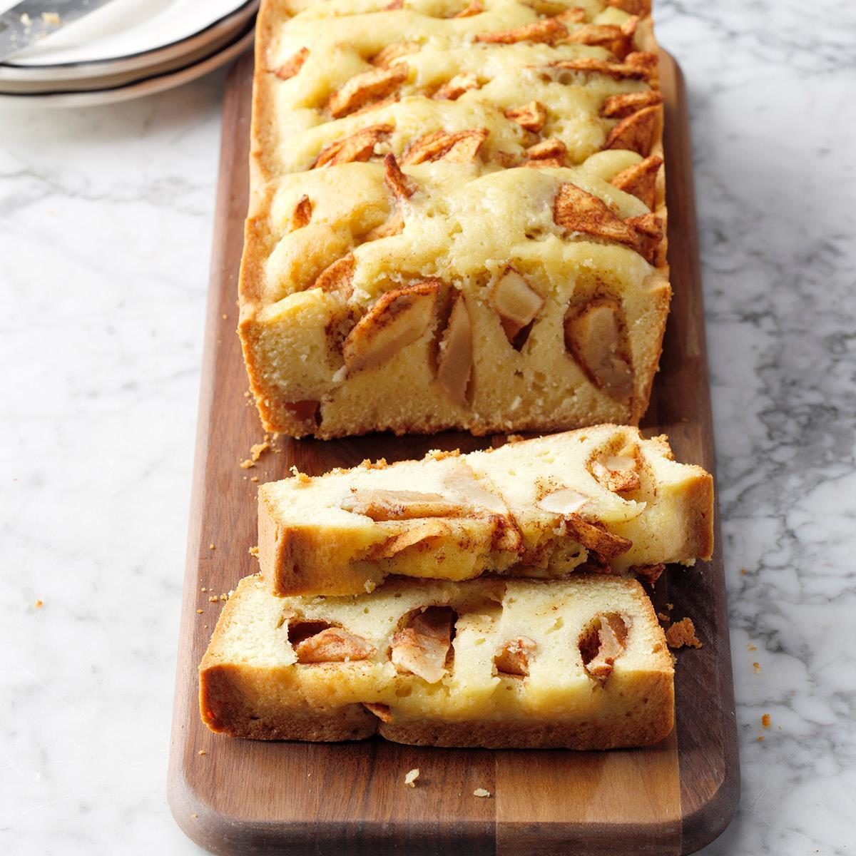 Transfer to a greased 9x5-in. loaf pan. Push apple slices vertically into batter, placing them close together.