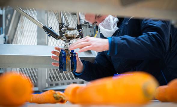 To avoid waste, these “ugly” adult carrots are peeled, trimmed, and shaped into roughly two-inch-long minis by machine. The baby carrots are then washed with a chlorine solution (as many fresh-cut vegetables are) and thoroughly rinsed before packaging.