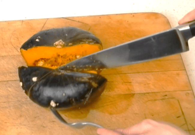 When you read about preparing a winter squash for baking, you’ll typically find the instructions say that a sturdy knife is needed to cut it open. But there’s a better way, and thank goodness, because we all know how really hard it is to cut an unbaked squash in half.