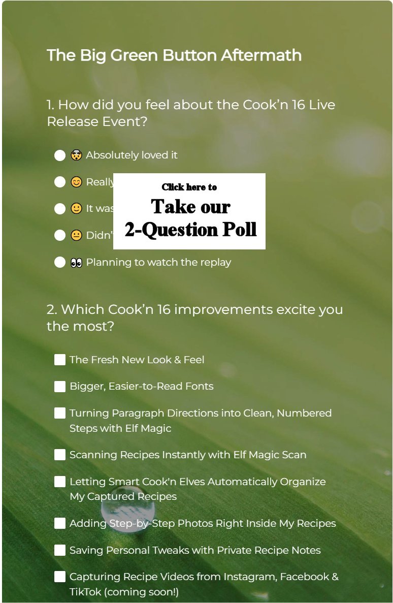 The Big Green Button Aftermath: Cook’n 16 Is Here...and We’d Love Your Thoughts