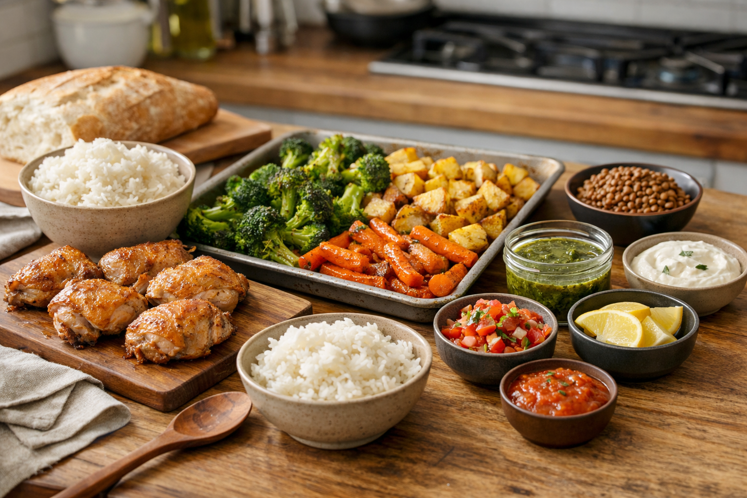 Restaurants don’t cook “a meal” from scratch every night. They cook mise en place—prepared components that can be assembled quickly depending on what’s needed in the moment. This week, your home kitchen needs the same energy.
