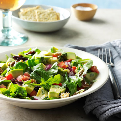 Tangy lime dressing is the perfect topper for this avocado salad. Toasted walnuts make for crunchy goodness, but try it with any kind of nut you like.