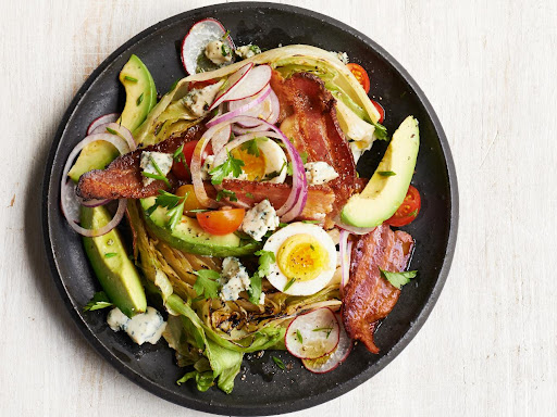 Boasting all of the ingredients you know and love in a cobb salad — iceberg lettuce, crispy bacon and crumbled blue cheese — this version also promises a bold smoky flavor, thanks to the lettuce taking a quick spin on the grill.