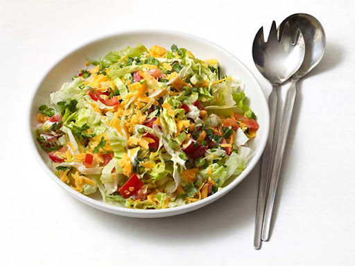 Make a dressing of sour cream, lime juice, sugar and salt, then toss with iceberg lettuce, tomatoes and shredded cheese.