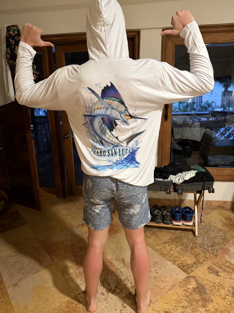 We found a marlin shirt and just had to get it for Carson