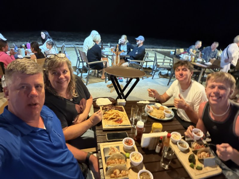 Sushi rolls, ceviche, fried fish, grilled fish, creations we had never even seen before. The flavors were incredible. The boys and I were starving after fishing all day, and we gave it our best effort. Eventually we had to surrender. We simply could not eat another bite....but the chef was not finished! So, we asked him to pack up the remaining dishes to go.